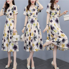 雪纺连衣裙女2021夏季新款v领气质时尚洋气减龄中...