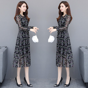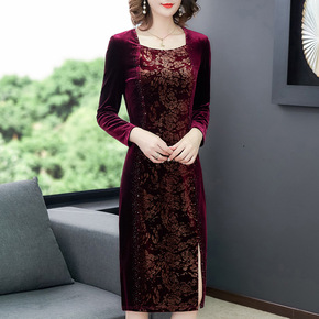 金丝绒连衣裙2020早秋装新款长袖子高贵洋气质改良...
