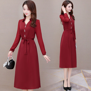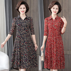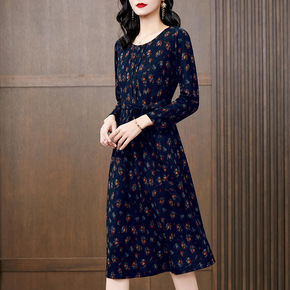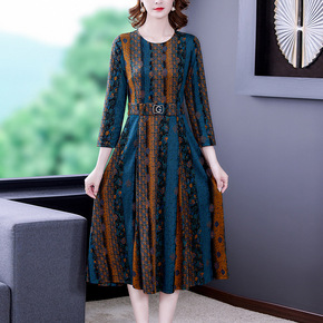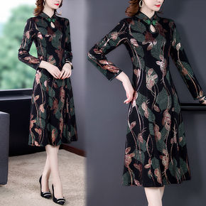 8519#中年妈妈复古改良连衣裙女2021秋新款喜...