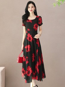 跨境连衣裙2021年新款连衣裙女过膝夏装妈妈修身遮...