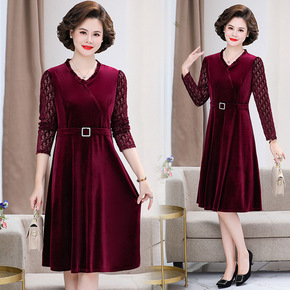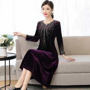 2021秋季时尚新款高端优雅气质金丝绒烫钻喜婆婆婚...