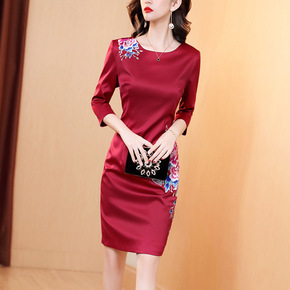 早秋缎面连衣裙女2021年新款时尚洋气减龄显瘦中年...