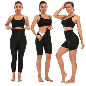 新款外贸批发运动七分褶皱打底裤女 高腰紧身裤短裤修...