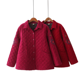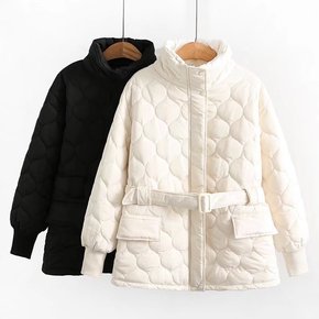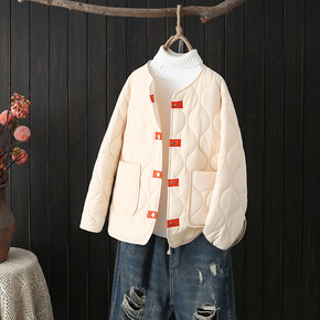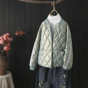 2021秋冬大码轻薄棉服女装长袖圆领包边显瘦胖MM...