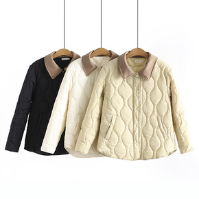 2021冬复古胖MM棉服轻薄宽松撞色翻领洋气时尚2...