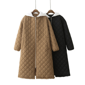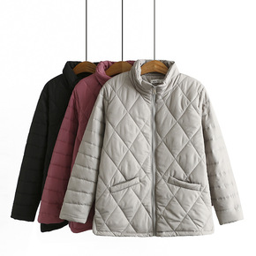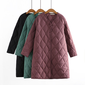 2021冬轻薄棉衣中长款大码女装菱形格显瘦胖MM简...