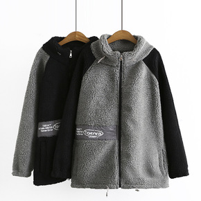 S6大码女装2021秋冬款胖mm显瘦宽松羊羔绒拼色...