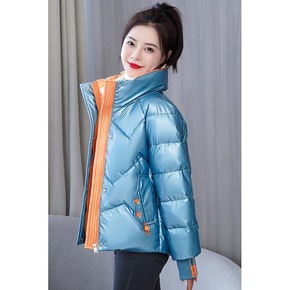 2021冬新款拼色大口袋棉服大码女装翻领白条200...