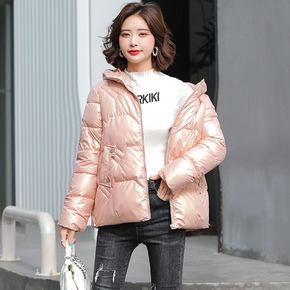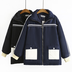 2021冬胖MM长袖棉服羽绒棉拼色帽简约休闲大码2...