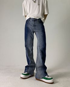 nirben 渐变微喇毛边牛仔裤韩版显腿长直筒休...