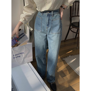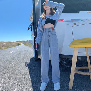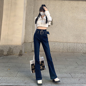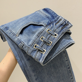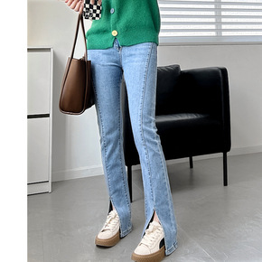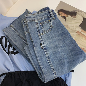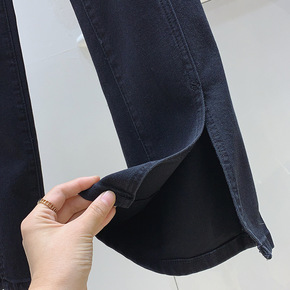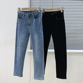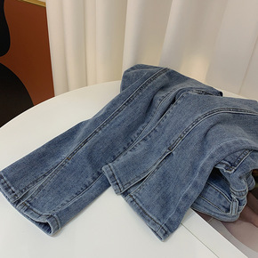 前开叉牛仔裤女2022早春韩版新款高腰弹力直筒牛仔...