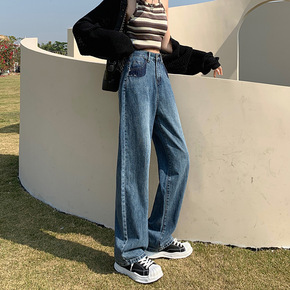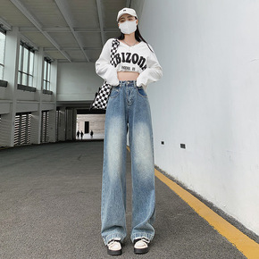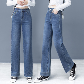 直筒牛仔裤女高腰显瘦拖地长裤春秋季百搭垂感休闲阔腿...