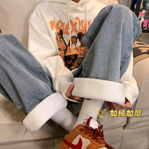 加绒/不加绒冬季新款阔腿牛仔裤女高腰ins百搭学生...