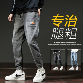 男士新款时尚修身牛仔长裤潮牌四季日系复古束脚运动休...