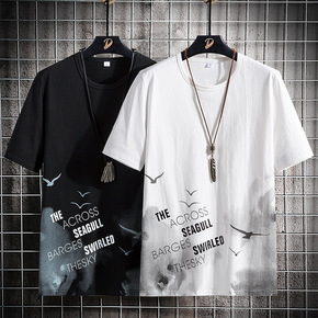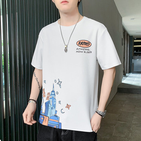 夏季短袖T恤男式新款韩版上衣冰丝宽松休闲青年体恤时...