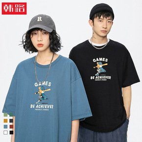 韩路日系男装主推款T恤男2022夏季新品复古棒球小...