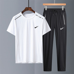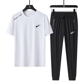男装2022夏季冰丝男士短袖t恤/长裤运动套装大码...