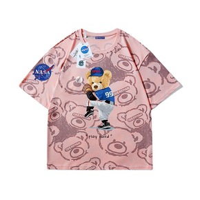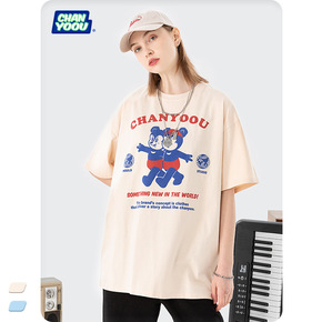 浅耀男装夏季新品卡通趣味小熊印花短袖男圆领宽松简约...