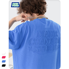 浅耀男装|夏季新品美式复古撞色毛巾绣圆领短袖男潮牌...