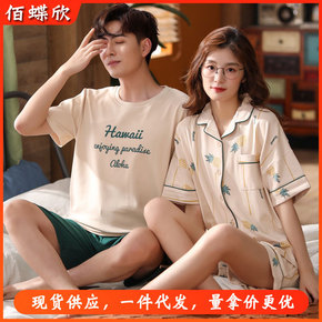 情侣睡衣春夏纯棉短袖短裤圆领男宽松休闲翻领女可出门...