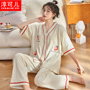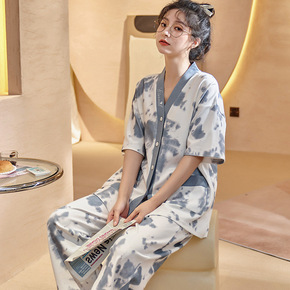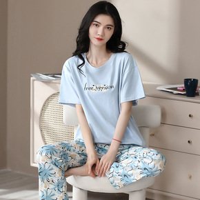 睡衣女夏季短袖长裤夏天新品女士居家全棉可外薄款穿家...