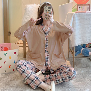 千鸟格睡衣女春秋季6535棉2022年新款长袖简约...