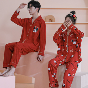 情侣红色喜庆睡衣大红色纯棉睡衣女本命年家居服结婚可...