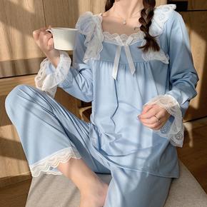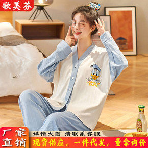 2022年新款春秋季长袖开衫睡衣女可爱甜美两件套可...