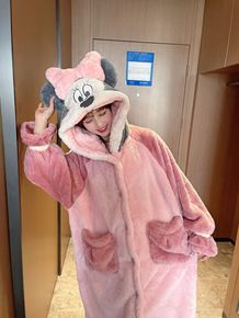 冬款同款开衫宽松长毛珊瑚绒套装情侣款家居服睡袍男女...