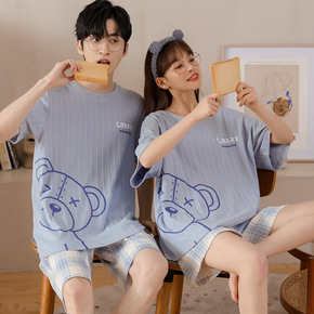 2022夏季情侣睡衣女短袖短裤韩版青少年男女士套装...
