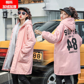 实拍派克棉服女冬长款加绒厚外套潮ins超火2021...