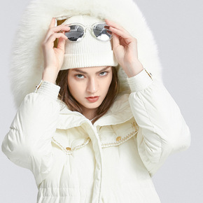 极寒系列系带收腰修身显瘦狐狸毛领舒适保暖羽绒服中长...