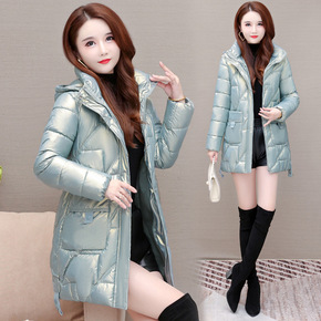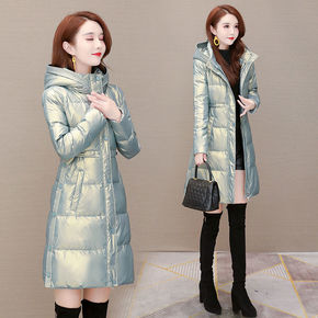 免洗亮面羽绒服女式长款2021冬季新款高档韩版白鸭...