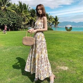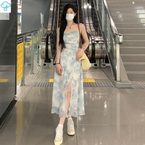 吊带连衣裙夏季雪纺印花2022韩版宽松显瘦荷叶边碎...