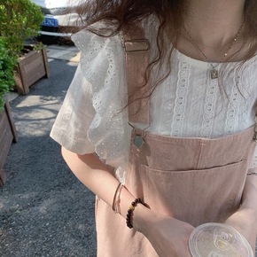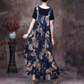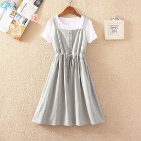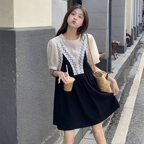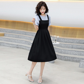 2022夏季新款潮流时尚简约气质圆领假两件背带赫本...
