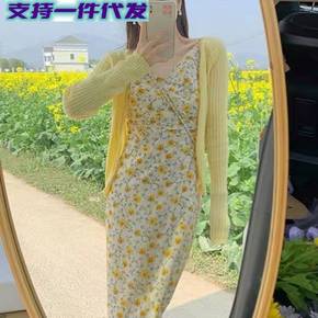 2022新款连衣裙女夏季减龄气质背带裙两件套吊带名...