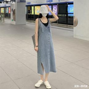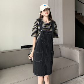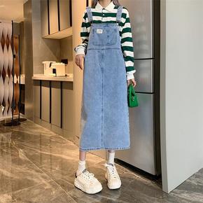 牛仔背带裙女2022新款宽松韩版小个子气质连衣裙显...