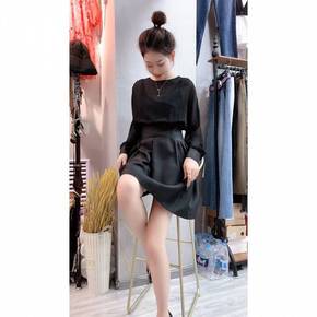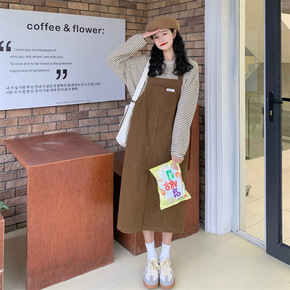 春秋新款日系学院风长袖背带小黑裙女学生韩版宽松显瘦...