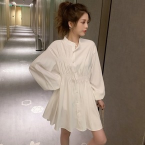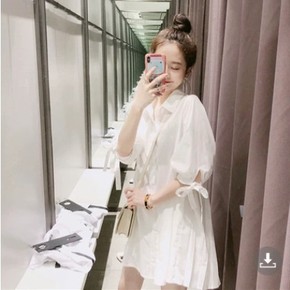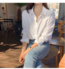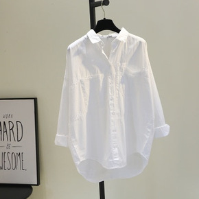 2022春夏装复古休闲宽松中长款白色衬衫女很仙的洋...