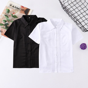 2021新款JK制服 尖领前风琴褶衬衫 短袖方领衬...