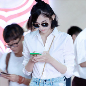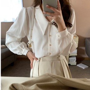 2021春秋韩国ch法式复古单排扣尖尖领长袖衬衫女...