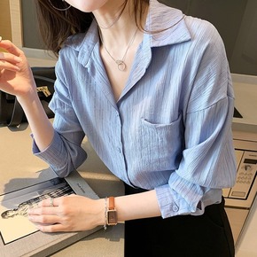2020新款网红韩版宽松雪纺碎花长袖衬衫女夏季薄款...