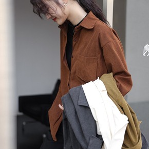 实拍灯芯绒衬衫女2021新款外穿衬衣韩版宽松休闲叠...