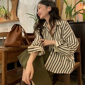 任小艺法式百搭长袖条纹衬衫女设计感春秋季新款气质慵...
