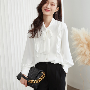 蝴蝶结系带衬衫女长袖2022春季新款小众别致设计感...