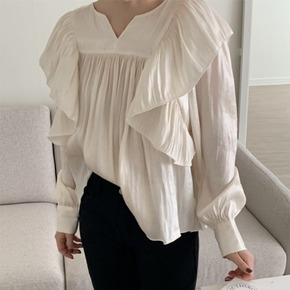 韩国chic设计感小众气质荷叶边褶皱衬衫女春季新款...