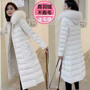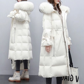 长款过膝羽绒服女冬白鸭绒2021年新款爆款系带收腰...