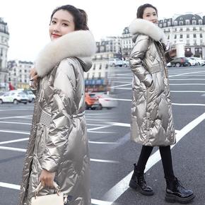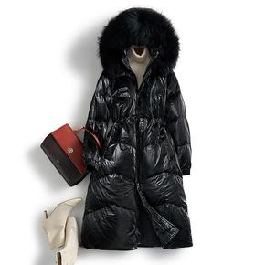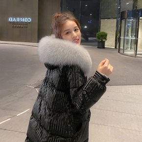 亮面大毛领羽绒服女2021年新款冬季中长款过膝时尚...