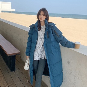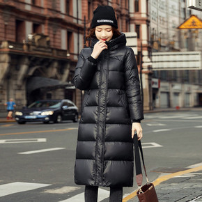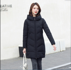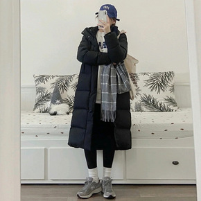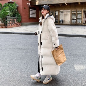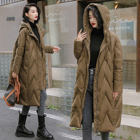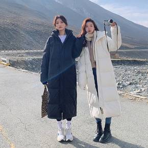 2021新款韩版休闲百搭情侣连帽羽绒服女中长款过膝...