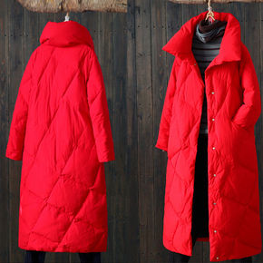 白鸭绒新版中国风民族风羽绒服女中长款加长过膝复古盘...